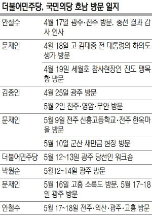 앞서 문 전 대표는 두 차례 호남을 찾아 “호남이 지지를 거둔다면 대선 불출마·정계 은퇴를 하겠다”는 배수진을 쳤다. 총선 결과, 더민주는 호남 28석 중 3석만 얻었고, 이 중 광주 8석은 모두 국민의당에 내주는 참패를 당했다. 문 전 대표는 총선 직후인 지난달 18일 전남 신안군 하의도 김대중 전 대통령 생가, 지난 9~10일 전북, 16~17일 전남 고흥 소록도를 잇달아 찾았지만, 호남 내 지지율은 좀처럼 반등 기미를 보이지 않고 있다.