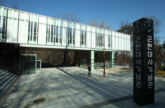 강북구(구청장 박겸수)는 17일 오후 3시 수유동 근현대사기념관(사진) 앞 광장에서 개관식을 연다고 밝혔다. 2049㎡ 부지에 지하 1층, 지상 1층(총면적 951.33㎡) 규모로 상설·기획전시실과 강의실 등을 갖춘 기념관엔 을사조약문과 헤이그특사위임장, 2·8독립선언서, 손병희 선생 초상화 등 유물 144점이 전시돼 있다.