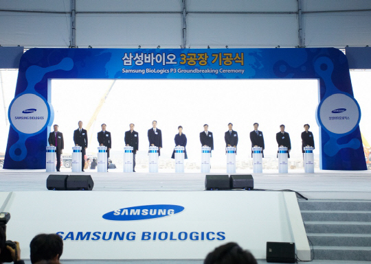 삼성바이오로직스 1공장(3만ℓ 규모)은 2013년 7월 시험생산 개시 이후 2015년부터 상업생산에 돌입했으며, 지난해 12월에는 인천 연수구 송도경제자유구역 내 사옥에서 제3공장 기공식(사진)을 개최했다. 삼성바이오로직스 제3공장은 총 8500억 원이 투자돼 설비규모(18만ℓ)와 생산 효율성에서 세계 최고 수준으로 건설될 예정이다.