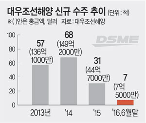 대우조선해양이 지난해 7월 29일 3조 원 규모의 2분기 영업손실을 털어낸 잠정 실적을 공시한 지 1년 만에 두 차례에 걸친 자구안에도 불구하고 ‘컨틴전시 플랜’(비상경영계획)에 돌입하게 된 것은 그만큼 수주 상황이 최악의 국면으로 치닫고 있기 때문이다. 게다가 오는 8월 드릴십(이동식 시추선) 인도 문제를 해결하지 못할 경우 유동성 위기는 더욱 심화할 것으로 보인다.