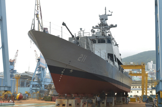 서해 북방한계선(NLL) 해역을 지킬 우리 해군의 신형 고속정(PKMR)이 처음 모습을 드러냈다. 28일 해군은 “부산 한진중공업 영도조선소에서 오늘 오후 2시 210t급 PKMR 1번함 ‘참수리-211호정’ 진수식을 가진다”며 “제1연평해전 참전용사들도 참석할 예정”이라고 밝혔다. PKMR는 선령 20년 이상의 구형 참수리 고속정을 내년부터 점진적으로 대체해 북한 경비정에 맞서 도발을 억제하는 임무를 맡게 된다. 공기부양정과 상륙정을 정밀타격하는 130㎜ 유도로켓과 76㎜ 함포 1문, 12.7㎜ 원격사격통제체계 2문 등을 갖춰 화력이 대폭 강화됐다. 길이 44m, 폭 7m, 무게 210t에 최대속력은 40노트(시속 74㎞)다.