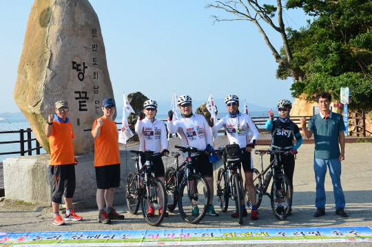 이화여대의료원(원장 김승철)이 배우 정흥채 씨가 이사장으로 있는 ㈔한국다중문화예술진흥회와 소아 뇌성마비, 소아 심장병, 소아암 등 난치성 어린이 환자 및 불우이웃을 돕기 위한 ‘들꽃들과 함께하는 임꺽정의 자전거 우리 땅 종주’ 행사를 개최한다. 종주단은 10일 해남 땅끝마을에서 출정식(사진)을 시작으로, 서울 강서구 구암근린공원까지 9박 10일 일정으로 868㎞의 대장정에 올랐다. 정흥채 이사장과 장덕진 진흥회 사무처장, 나도채 탐험대장은 전 구간을 완주하고, 구간별로 전국자전거연합회 지역별 회원과 자원봉사자들도 함께 달린다. 종주단은 출정식에 앞서 지난 8일 이화여대의료원을 찾아 난치성 소아암을 앓고 있는 어린이에게 희망과 용기를 북돋워 주기도 했다.