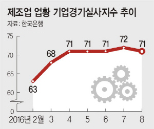 하세호 한은 기업통계팀 과장은 “제조업의 업황 BSI가 하락한 것은 1차금속과 석유 업종이 악화된 영향이 크다”고 설명했다.