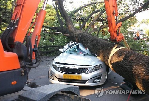 현충원 앞서 7m 크기 거목에 깔린 택시