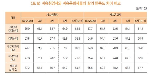 이에 비해 2006년 이후 취업 상태를 유지한 사람들의 삶의 만족도는 훨씬 높았다.