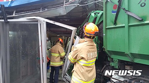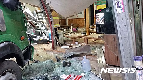 청소차 식당 돌진