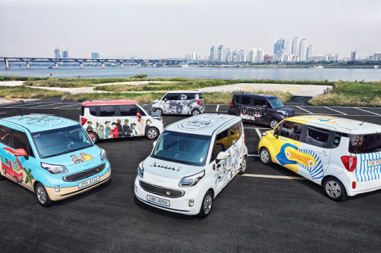 카셰어링 업체 쏘카가 서울 한강 둔치에서 공개한 ‘#아트쏘카’. 쏘카는 카셰어링과 예술 합작 시리즈 ‘스트리트 오아시스’의 첫 번째 프로젝트로 유명 일러스트레이터의 작품을 쏘카 차량에 랩핑한 ‘#아트쏘카’를 운영한다고 20일 밝혔다.
