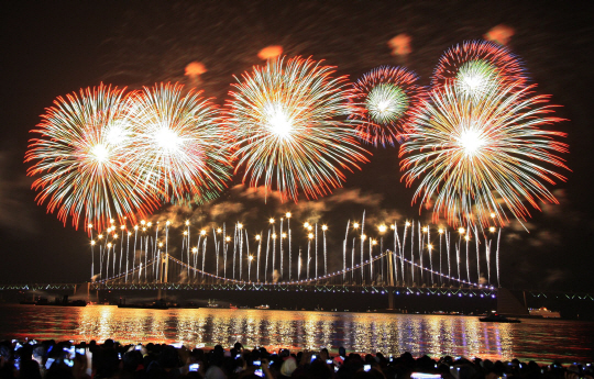 부산 불꽃축제는 해상 교량인 광안대교(총연장 7.4㎞)를 배경으로 최대 지름 400m의 대형 불꽃과 폭포처럼 떨어지는 불꽃을 연출하는 것으로 유명하다. 국내외 관광객도 단일행사 국내 최대규모인 100만 명 이상이 예상된다.