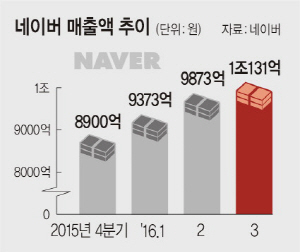네이버가 올 3분기에 사상 처음으로 분기 매출액 1조 원을 돌파했다. 특히 네이버는 매출액뿐만 아니라 영업이익과 해외 매출액에서도 모두 최고치를 달성, 지난 2분기에 이어 ‘트리플 크라운’ 행진을 이어갔다.