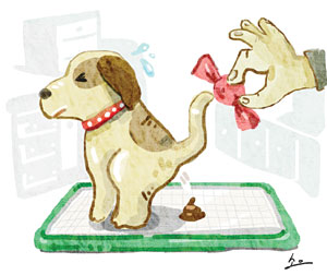 강아지들은 기본적으로 자신이 먹고 자는 곳을 배변하는 장소와 분리하는 습성을 가지고 있고, 한번 배변한 냄새가 배어 있는 곳에 지속적으로 배변하는 것이 보통이다. 교육방법으로는 먼저 화장실로 사용될 장소에 배변 패드를 넓게 깔고 배변할 시간이면 데려간다. 보통 먹거나 자고 난 후에는 화장실로 데려가는 것이 좋다. 배변 전에는 빙글빙글 돌거나 바닥 냄새를 킁킁 맡거나 안절부절못하는 행동을 한다. 패드에 배변할 경우 칭찬과 간식 등으로 보상을 해주어 그 행동을 습관으로 만드는 ‘긍정강화’가 기본이 된다. 패드 위에서 배변을 가리게 되면 점차 패드를 좁혀 준다.