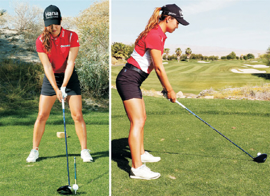 제가 가장 중요하게 여기는 건 몸의 균형과 정렬입니다. 측면에서 봤을 때 무릎과 허리는 일정한 비율로 각도를 이뤄야 하고, 몸이 너무 앞이나 뒤로 쏠리지 않도록 해야 합니다. 어깨선은 발등 위치에 놓이고, 무릎은 많이 굽히지 않는 것이 좋습니다. 오히려 거의 일어선 듯한 느낌으로 약간의 긴장감만 주는 정도에 그쳐야 합니다. 그래야 백스윙을 할 때 회전이 편하고 부드럽게 이뤄집니다.