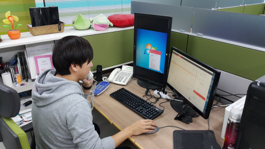 증권회사에 근무하는 곽모 씨는 한동안 전화 응대 스트레스로 사무실 출근이 두려웠지만 최근 들어서는 편안한 마음으로 출근하고 있다. 곽 씨는 서너 달 전 사무실로 걸려오는 전화 응대에 몇 차례 실수하는 바람에 주요 고객들이 이탈해 전화벨 소리만 들어도 가슴이 철렁하는 ‘콜포비아(call phobia·통화 공포증)’를 앓았다. 그러나 한통이 KT와 함께 서비스하는 ‘통화매니저 오피스’(사진) 서비스를 이용하고부터는 콜포비아가 말끔히 치료됐다. 통화매니저 오피스를 통해 PC로 발신자를 미리 확인하고 응대를 여유롭게 할 수 있기 때문이다.