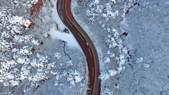 15일 강원 산간에 눈이 내려 눈꽃이 핀 옛 영동고속도로 대관령 구간 산길을 한 승용차가 지나고 있다.
