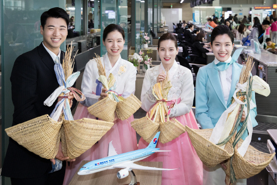 ‘복조리 마을’로 유명한 경기 안성시 죽산면 구메마을에서 제작된 이 복조리는 국내 공항의 대한항공 탑승수속 카운터·라운지, 서울 강서구 공항동 소재 본사 및 서소문 사옥, 대한항공 산하 국내 호텔 등 총 39곳 사업장에 걸렸다. 대한항공 관계자는 “지난 2008년부터 시작해 올해로 10년째인 ‘복조리 걸기’ 행사(사진)는 고객들의 새해 행복을 기원하고 우리 고유의 미풍양속이 보존·발전되길 바라는 의미에서 진행되고 있다”고 말했다.