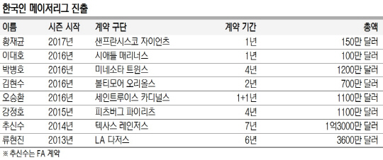 지난 시즌 종류 후 FA 자격을 얻은 황재균은 원 소속팀 롯데, 그리고 kt의 구애를 뿌리치고 미국행을 선택했다. 국내에 잔류하면 4년 동안 80억 원가량을 받을 수 있음에도 불구하고 주전은커녕 메이저리그 진입조차 보장되지 않은 가시밭길을 택한 것이다.