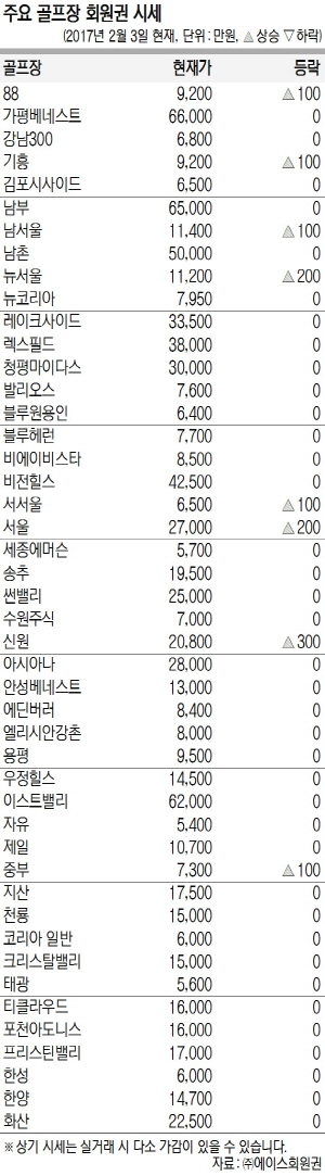‘골프 8학군’ 고가권 강세[회원권 핫이슈]
