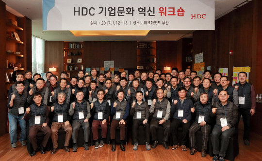 지난 1월 현대산업개발은 그룹 사장단 임원을 대상으로 ‘HDC 기업문화 혁신 워크숍’(사진)을 열었다. 회의문화와 토론문화 개선을 위한 강의 및 자유토론으로 진행된 이 행사는 실제 회사에서 회의 주관 역할을 맡는 사장과 임원부터 수평적 토론문화에 대한 이해와 공감이 이뤄져야만 기업의 문화혁신이 주도될 수 있다는 믿음 아래 기획됐다. 임직원 간 소통의 장을 여는 데 성공했다는 평가를 받았다.