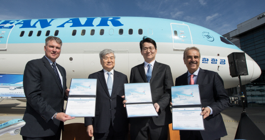 대한항공의 보잉 787-9 차세대 항공기는 승객들에게 차원이 다른 항공 여행 경험을 제공하는 동시에, 차세대 첨단 기술이 집약된 고효율 친환경 항공기다. 특히 기내 환경이 대폭 달라졌다. 기존 항공기가 백두산 수준의 기압(8000ft)이었다면, 보잉 787-9 차세대 항공기는 한라산이나 지리산 수준(6000ft)의 기압을 유지한다. 또한 습도도 타 항공기보다 5% 이상 높아져 쾌적한 항공 여행을 즐길 수 있게 된다. 항공기 무게 기준으로 탄소복합소재가 50%, 알루미늄 합금이 20%가 사용돼 구조적 성능이 향상되는 동시에 무게가 줄어들어 연료효율이 개선됐다. 이에 따라 타 기종 대비 좌석당 연료효율이 20% 향상되고, 탄소배출은 20% 저감된다. 이·착륙 소음 또한 타 기종 대비 60% 이상 줄어들었다. 대한항공은 이번 보잉 787-9 차세대 1호 항공기를 시작으로 2019년까지 총 10대를 도입, 글로벌 선도 항공사로서의 위상을 강화해 나갈 계획이다.