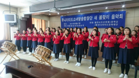 합창단은 아리랑을 비롯해 민요 ‘도라지타령’과 ‘한강수타령’ ‘경복궁타령’, 창작 국악합창곡 ‘하늘에 뜬 배’ ‘아름다운 나라’ 등 아름다운 우리 말로 된 노래를 선보였다. 지난 2006년 창단한 세계 최초이자 유일한 조선족 학생 합창단인 유나이티드 소녀 방송 합창단은 하얼빈시의 조선족 여중생 50여 명으로 구성돼 있다.