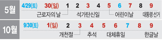 대통령 선거일(5월 9일)이 확정되면서 징검다리 연휴가 늘어난 5월은 가까운 제주도가, 하루 휴가로 최대 10일을 쉴 수 있는 10월 황금연휴는 장거리인 하와이가 각각 인기 여행지로 떠오르고 있는 것으로 나타났다.