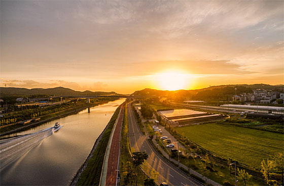경인아라뱃길은 초보 라이더들이 즐기는 대표적인 도심 라이딩 코스다. 한강을 따라 펼쳐진 경인아라뱃길 자전거 도로는 총 약 20㎞에 달하는 직선 구간이다. 곳곳에 폭포, 전망대, 다양한 휴식시설, 공연시설 등 볼거리가 다양하다.