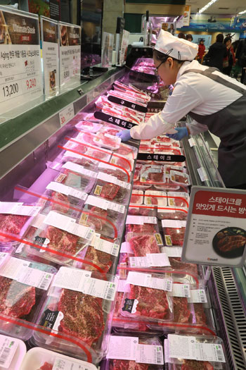 이마트는 지난해 11월 도입한 ‘스테이크 전용 존’을 이달 안에 80개까지 확대하고 올해 하반기에는 최대 100개까지 늘릴 계획이라고 20일 밝혔다. 이마트가 1993년 창동점 오픈 이후 쇠고기 판매대를 전면적으로 리뉴얼하는 것은 24년 만에 처음이다.