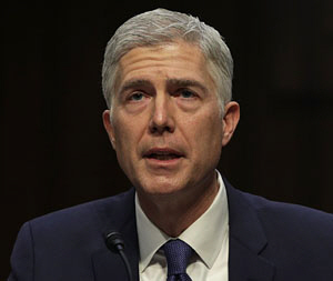 도널드 트럼프 미국 대통령이 낙점한 보수 성향의 닐 고서치(사진) 연방대법관 지명자에 대한 상원 인준청문회가 20일 시작됐다. 고서치 지명자의 인준 여부에 따라 트럼프 대통령의 ‘반(反)이민 행정명령’ 등에 영향을 미치는 대법원의 이념 지형이 결정되는 만큼, 공화당과 민주당은 팽팽하게 맞서는 모양새다.