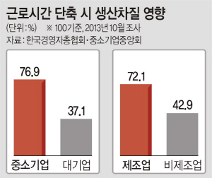 근로시간 한도가 줄면 중소기업들이 더 이상 인내하기 힘들 것이라는 우려도 제기됐다. 그는 “중소기업 76.9%가 휴일근로 제한 시 생산 차질이 우려된다고 답해 대기업보다 2배 높았다”며 “만성적 인력부족을 겪는 중소기업들이 납품물량, 납기일을 못 맞추고 인건비 부담에 허덕이다 도산, 폐업에 몰리게 될 것이 자명하다”고 말했다.