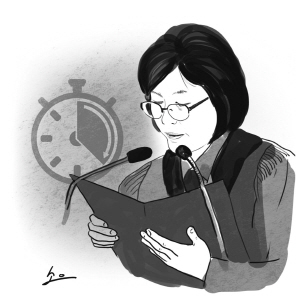 2017년 3월 10일 오전 11시 이정미 헌법재판소장 권한대행이 읽어 내려간 ‘대통령 파면’ 결정문 전문의 음절 수를 죄다 세어 봤다. 하이라이트인 ‘피청구인 대통령 박근혜를 파면한다’까지는 6763음절(띄어쓰기 포함). 그가 여기까지 읽는 데 걸린 시간은 21분이다. 보충의견이 더해진 맨 끄트머리 ‘이것으로 선고를 마칩니다’까지는 7030음절에 22분이 소요됐다. 그의 1분당 말 속도는 평균 320음절가량인 셈이다.