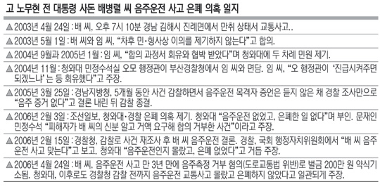 임 씨는 언론에 관련 사건을 제보하면서 “청와대 민정수석실 오 국장(행정관)이 ‘이번에 진급시켜 줄 테니 없던 일로 하자’고 말했다”고 주장했다. 이에 대해 청와대는 “터무니없는 얘기”라고 일축했다. 문재인 당시 민정수석도 “경찰청 본청 감사 결과 사실관계가 임 씨의 주장과는 다른 것으로 결론이 난 것으로 안다”고 말했다. 문 수석은 민정수석실의 회유 의혹과 관련, “오 국장이 부산에 갔는지는 잘 모르겠다”며 “그렇게 말했을 리가 없다고 생각한다”고 말했다.하지만 이후 이 사건이 정치·사회 문제화되자 경찰청은 감찰을 통해 “배 씨가 소주 두 잔을 마신 후 운전하다 사고를 낸 사실이 확인됐다”고 발표했다. 하지만 청와대는 이후에도 “경찰청 감찰 발표 전엔 음주운전 사고 사실을 전혀 몰랐다”며 배 씨의 음주운전 사고 사실에 대해 끝까지 부인과 은폐로 일관했다.