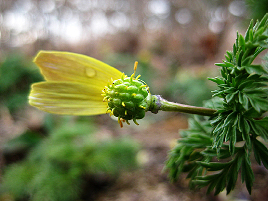 제각기 아름다운 자태를 뽐내느라 바쁩니다. 고혹적인 황금색 꽃을 자랑하며 봄의 전령사로 불리는 복수초입니다.
