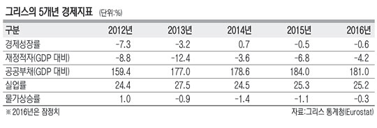 수출 산업기반이 없는 상황에서 내수 붕괴는 청년 고용 절벽을 야기하고 있다. 부가가치세를 13%대에서 24%대로 인상하는 등 각종 세금을 인상해 재정수입을 늘리는 방식 탓에 기업활동은 더 위축된다. 아테네 현지에 진출한 국내업계 관계자는 “경제위기에 따라 그리스의 거의 유일한 대기업인 해운사들이 자발적으로 사회공헌을 늘리는 노력을 기울이고 있지만 정부가 선원 고용에 대한 세금을 올리면서 선원 구조조정이 이뤄지는 상황”이라며 “단순 아르바이트 등을 빼면 실질 청년 실업률은 80%에 달할 것”이라고 말했다.