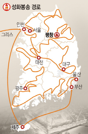 11월 1일 인천국제공항을 통해 국내에 들어오며 내년 2월 9일 개회 때까지 17개 시·도와 강원 18개 시·군 전체를 도는 대장정에 돌입한다.