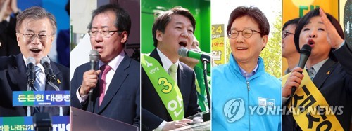 차기 대권을 노리는 주요정당 대선후보 5인은 대선을 열흘 앞둔 29일 일제히 주말 유세전에 돌입했다.