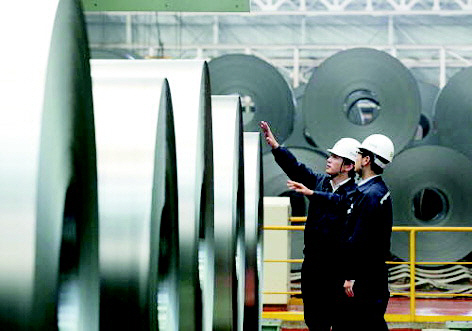 12일 오후 충남 당진시 송악읍 현대제철 당진제철소 내 냉연(冷延)공장(사진)에 들어서자 ‘우르릉’하는 굉음이 고막을 덮쳤다. 이어 막 입고된 914m 길이의 열연코일이 세척용 염산으로 가득 찬 산세장치를 거쳐 압연기 속으로 미끄러져 들어가는 광경이 눈에 들어왔다. 3㎜ 두께의 강판은 압연기를 거치면서 자동차 외판 두께인 0.7~0.9㎜로 날씬해졌다. 압연기는 세계 최초로 롤 6개를 1세트로 구성한 것이어서 그만큼 생산성이 우수하다. 아연도금 과정까지 거치자 은백색으로 반짝이는 자동차용 강판으로 재탄생했다.