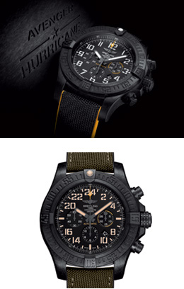 어벤저 허리케인 컬렉션은 장비의 기존 경계를 허무는 새로운 크로노그래프로 평가받는다. ‘브라이트라이트(Breitlightⓡ)’ 소재를 시계 케이스에 세계 최초로 적용해 매우 견고하면서도 가벼운 케이스로 워치메이킹의 혁신을 불러왔다.