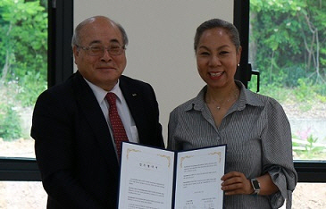 백수현(동국대 석좌교수·왼쪽) 한국표준협회장은 23일 강원 홍천군 해밀학교를 방문해 인순이 이사장에게 건축 후원금을 전달하고 ‘사단법인 인순이와 좋은 사람들’과 다문화 가정 자녀 지원을 위한 상호 업무협약을 체결했다.