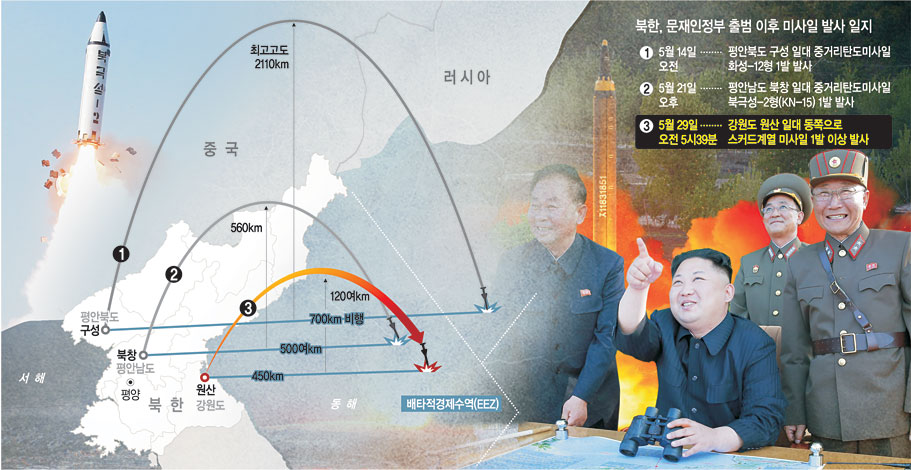 북한이 29일 새벽 스커드 계열로 추정되는 탄도미사일을 발사해 동해상에 낙하했다. 일본 정부는 배타적경제수역(EEZ)에 낙하했다고 주장하며 강하게 반발하고 있다.
