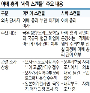 아베 신조(安倍晋三) 일본 총리의 부인 아키에(昭惠) 여사가 연루된 ‘아키에 스캔들’과 관련해 일본 검찰이 의혹의 핵심 당사자인 극우성향 모리토모(森友)학원 측을 압수수색했다. 아베 총리도 자신이 연루된 ‘사학 스캔들’에 대해 사죄 입장을 표명했지만 아베 총리 부부의 양대 스캔들 논란은 진상 규명의 향방에 따라 아베 총리의 정권 유지에도 타격이 될 전망이다.