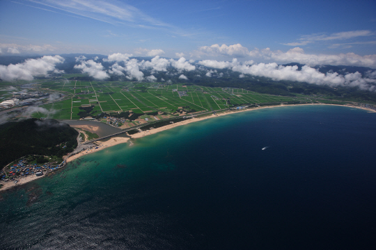 울진군 기성면과 근남면 일대 망양해수욕장은 반대편 끝이 눈에 아른거릴 정도로 길다.