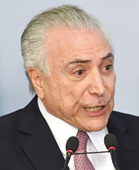 브라질 현직 대통령 최초로 검찰에 기소된 미셰우 테메르(사진) 브라질 대통령이 자신의 뇌물수수 혐의는 “검찰이 드라마를 쓴 것”이라며 강력히 반발했다. 7%까지 지지율이 하락해 정치권 안팎에서 퇴진 요구가 나오고 있지만 내년 말 임기가 끝날 때까지 자리를 지키겠다는 것이다. 지우마 호세프 전 대통령 탄핵 이후 브라질이 또다시 정치적 불확실성에 휩싸이고 있다.