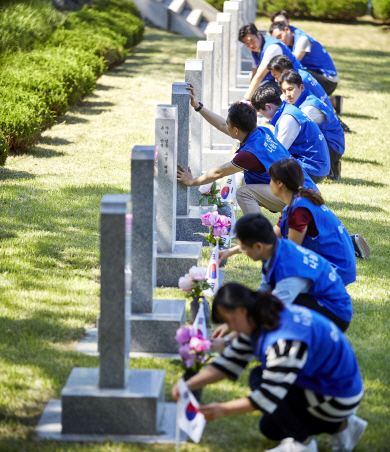 효성은 올해 1월 조현준 회장이 취임한 이후 경영방침으로 ‘사회공헌활동 강화’를 내세웠다. 취약계층 지원, 문화예술 후원과 함께 1사 1묘역 정화활동(사진), ‘나라사랑 보금자리’ 지원 등을 지속한다는 방침이다.
