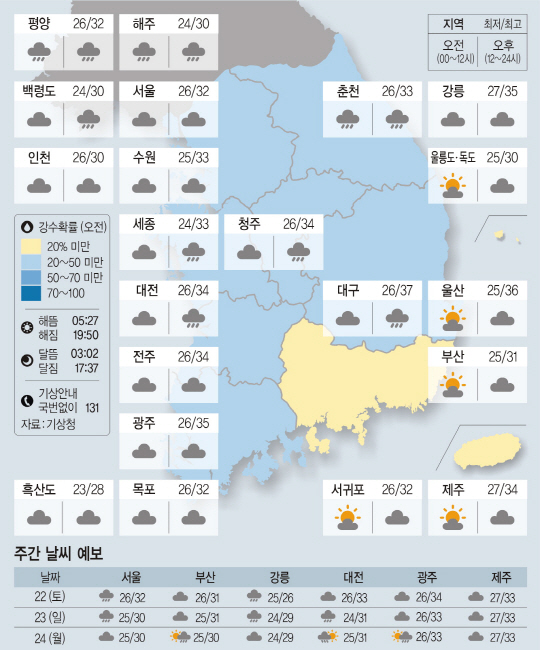 <날씨이야기>7월21일 금요일(음력·윤 5월28일)