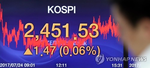 이날 코스피는 전장보다 1.47포인트(0.06%) 오른 2,451.53으로 장을 마쳤다.