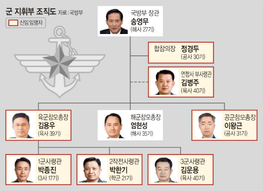 이에 따라 해군참모총장 출신 송영무 국방부 장관과 군정권·군령권을 행사하는 해·공군 쌍두마차 체제가 형성됐다. 해·공군 참모총장 출신이 군 최고 수뇌부인 국방장관과 합참의장을 동시에 맡은 것은 1948년 국군 창설 이후 69년 만에 처음이다.