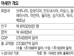 8일 외신들에 따르면 아세안은 “현대의 기적”이라고 불릴 만큼의 성과를 자랑한다. 아세안의 국내총생산(GDP)은 2015년 기준 2조4355억 달러로 전 세계 총 GDP의 3%에 해당하고 총 교역량은 2조3927억 달러에 달한다. 50년 전인 1967년 8월 8일 태국, 인도네시아, 말레이시아, 필리핀, 싱가포르의 ‘방콕선언’에 의해 창설된 아세안은 이후 브루나이, 베트남, 라오스, 미얀마, 캄보디아가 차례로 가입해 현재 10개국으로 구성돼 있으며 경제공동체로 발전해 지난 15년간 연평균 5.3%의 경제성장을 기록했다.