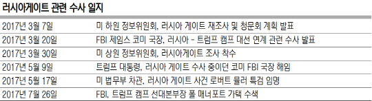 특검 수사와 별도로 진행되는 러시아게이트에 대한 미 의회 조사도 속도를 내고 있다. 트럼프 대선 캠프는 지난 2일 러시아게이트 관련 별도 조사를 벌이고 있는 상원 법사위원회에 2만 쪽 분량의 관련 서류를 제출했다. 매너포트와 트럼프 주니어도 이달 2∼4일 사이 각각 400쪽, 250쪽 분량의 서류를 위원회에 넘겼다고 조지 하트먼 상원 법사위 대변인은 설명했다.