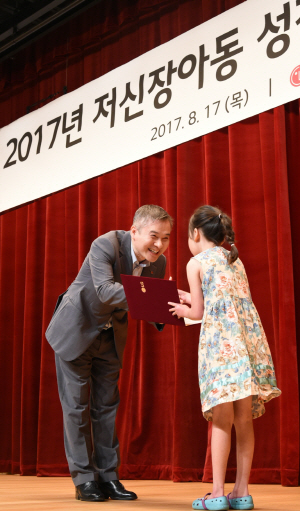 하현회(사진 왼쪽) ㈜LG 사장은 17일 서울 여의도 LG트윈타워에서 열린 저신장 아동 성장호르몬제(유트로핀) 기증식에서 대상 어린이에게 증서를 수여했다. LG는 이날 116명의 어린이에게 10억 원 상당의 유트로핀을 지원키로 하는 등 1995년부터 총 1334명을 지원해 왔다.