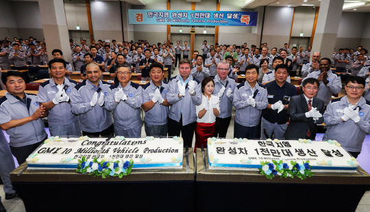 한국지엠이 최근 노조 파업과 철수설 등으로 내홍을 겪는 와중에서도 2002년 회사 출범 이후 15년 만에 완성차 누적 생산 1000만 대 돌파를 기록했다.