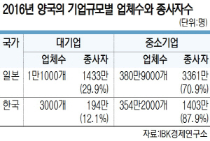 한국은 100명이 63개 일자리를 놓고 경쟁하고 있지만, 일본은 한 명이 2.3개의 일자리를 골라갈 수 있는 상황이다. 문재인 정부가 일자리 창출을 최우선 과제로 내걸었지만, 법인세 인상 등 규제 강화에 나서면서 되레 일자리가 감소할 수 있다는 우려가 나온다.